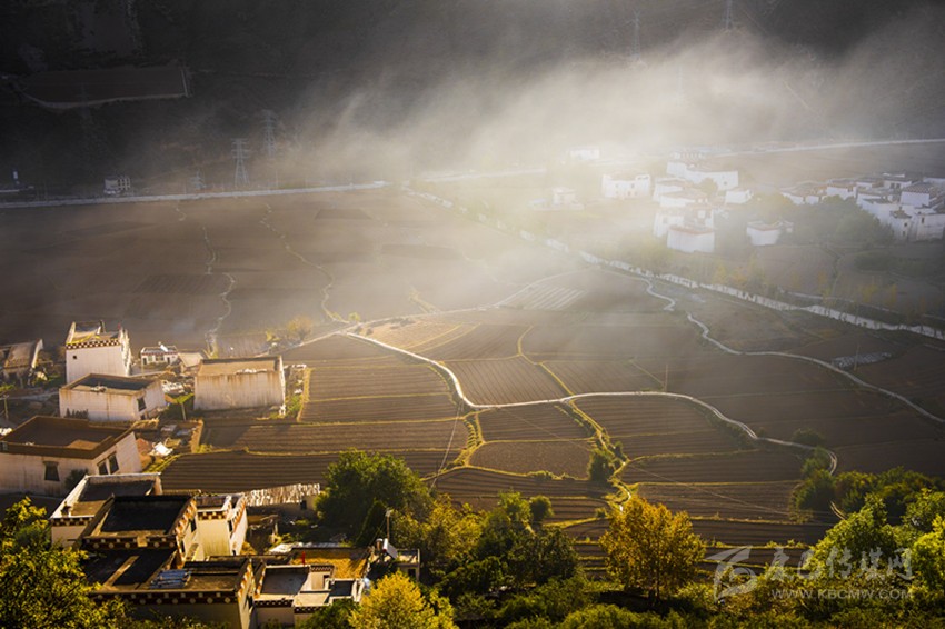 青德藏鄉(xiāng)田園景區(qū)里,白色藏房似珍珠,散落于田間。
