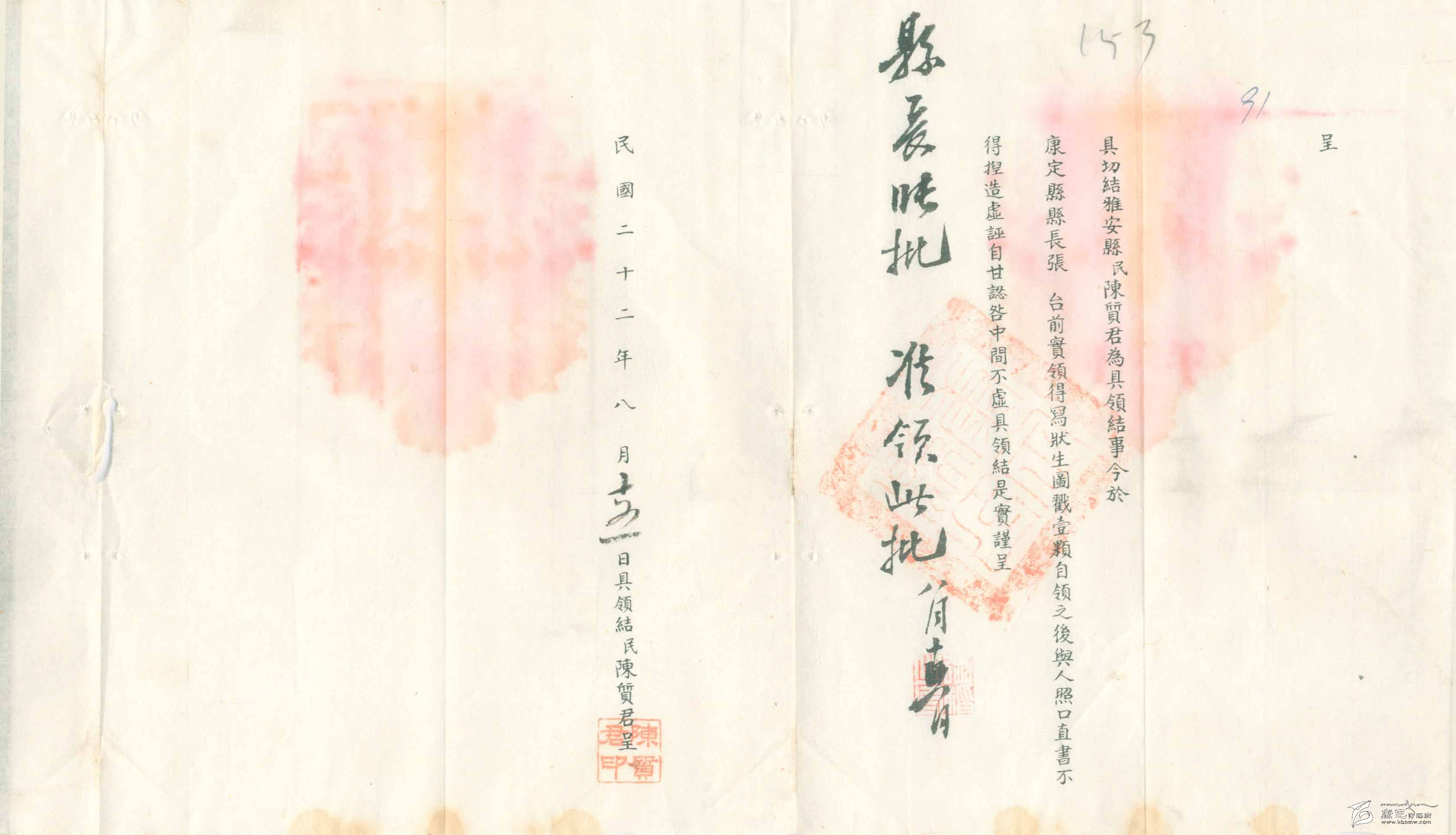 8月15日,陳質(zhì)君領(lǐng)到了“戳記”(應(yīng)是一枚印章),又向縣政府寫了“具結(jié)”(保證書)。對(duì)于他的考試估計(jì)到此結(jié)束,此人也就開始了他的“寫狀”生活。