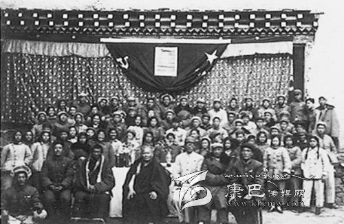 貢嘎山寺開學(xué)典禮 坐在第一排中間者為貢嘎活佛與于道泉(右)教授