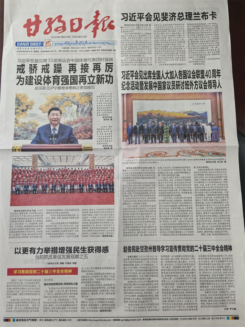 2024年8月22日出版的《甘孜日?qǐng)?bào)》(第13858期)。楊燕 攝
