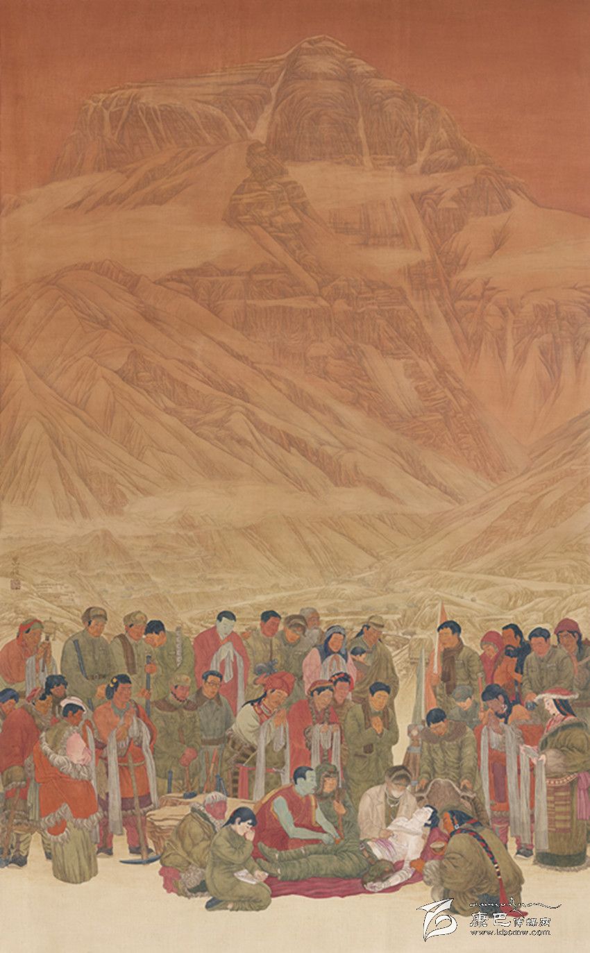 劉忠俊在繼承藏族傳統(tǒng)文化和唐卡審美的基礎(chǔ)上,歷時(shí)一年半,創(chuàng)作了工筆畫《川藏公路》。該作品以史詩(shī)般恢宏的氣度,謳歌了當(dāng)年18軍為維護(hù)祖國(guó)統(tǒng)一、建設(shè)美好藏區(qū)、修筑川藏公路敢于犧牲和勇于奉獻(xiàn)的精神。作品通過靜穆質(zhì)樸的美,彰顯出中華民族自強(qiáng)不息、百折不撓的精神。