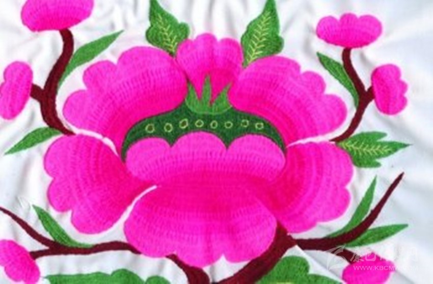 在魚通,刺繡以花朵為主。會(huì)繡花的女人,被稱為“花匠”。“小花匠”們從十多歲就開(kāi)始接觸刺繡,通過(guò)年長(zhǎng)者口傳身授,自學(xué)的方式成為一代繡女。稚嫩的雙手,再經(jīng)過(guò)時(shí)間的洗禮,刺繡的技巧早已爛熟于心,在心的指引下,穿針引線,針尖如麥芒,各色陪底線來(lái)回,穿梭于布料的經(jīng)緯之間。買回青布,從下手的第一針開(kāi)始,整幅圖的構(gòu)架便了然于心,各式花朵圖案成竹在胸,線條在暗自游走,勾勒越來(lái)越清晰。每一次的飛針走線,是婦人手上的一針針,一線線,都在為作品最后的完美收關(guān),錦上添花,做著必不可少的鋪墊。