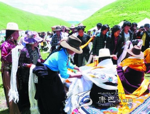 剛走進(jìn)宗塔壩子,記者便意識(shí)到一個(gè)人想象力的貧乏,現(xiàn)實(shí)中的宗塔草原以一種與眾不同的美把一個(gè)人的目光悄悄托起。四周長(zhǎng)滿(mǎn)牧草的小山像溫順的花瓣,靜靜包裹著那一片平坦的壩子,如果一個(gè)人眺望的目光足夠高足夠遠(yuǎn),山和壩子的造型會(huì)讓人聯(lián)想到一朵蓮花,而壩子里小點(diǎn)般的帳篷就像一顆顆蓮子,世世代代的宗塔人便在這蓮花般盛開(kāi)的天地里穿行、繁衍生息。