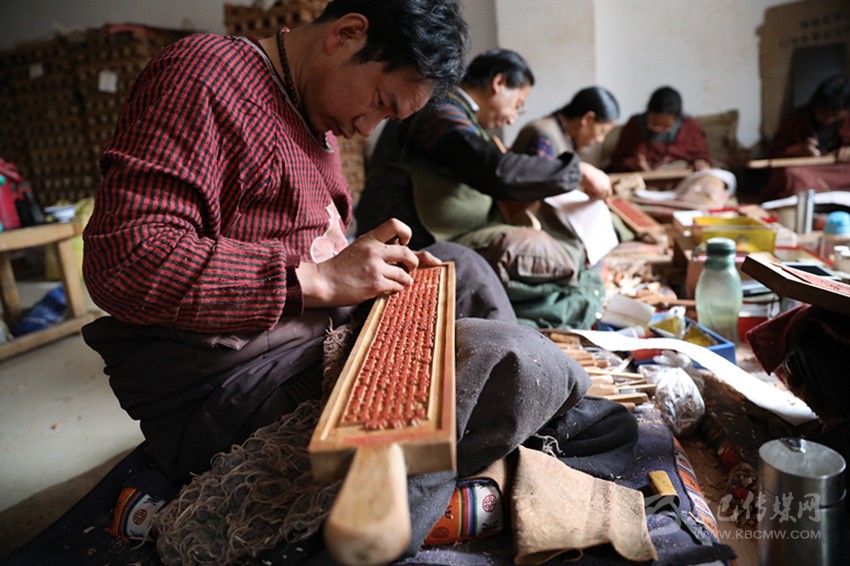 德格籍雕刻工匠格絨介紹說:“這是一項(xiàng)技術(shù)活,所有的文字都需要反刻在紅樺木上,我們大概六到七天能完成一塊經(jīng)板的雕刻。雕刻完成后還要經(jīng)過五次的校對(duì),有錯(cuò)的進(jìn)行再次校刻,最后在雕刻好的經(jīng)板上涂上酥油晾曬,一塊復(fù)刻經(jīng)板才算完成?!?/span>