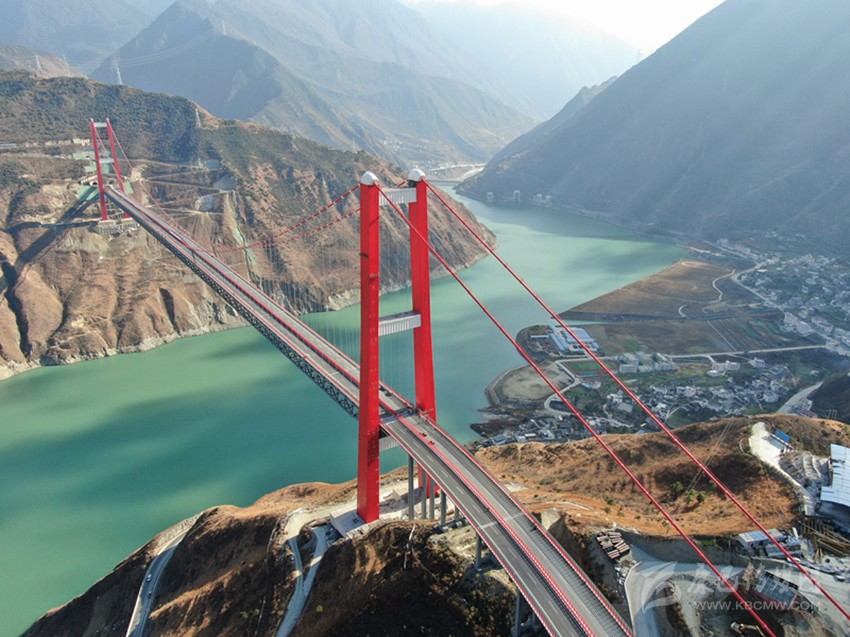 在瀘定,主跨1100米長的瀘定大渡河興康特大橋,好似一條巨龍橫跨在奔騰咆哮的大渡河上。遠處觀望,能感覺到峽谷的風(fēng)猛烈地刮過,兩岸的山勢高拔嶙峋,仿若刀劈斧削一般讓人眩暈。大橋穩(wěn)穩(wěn)地橫架在兩山之間,它是人類智慧與創(chuàng)造力的結(jié)晶。