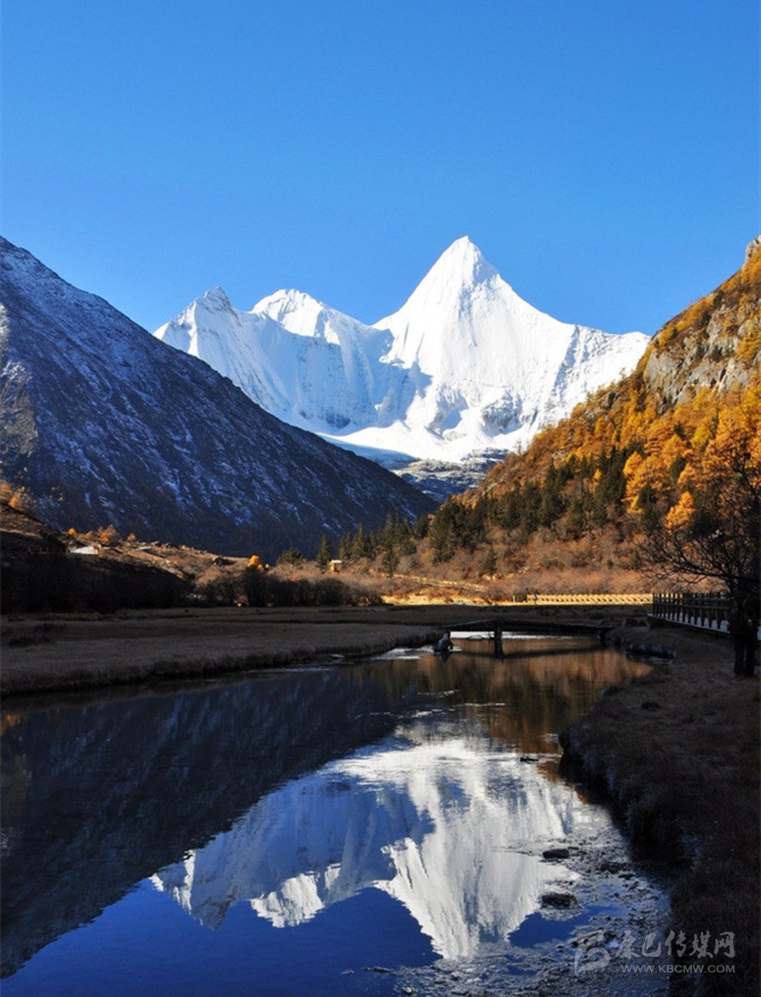 央邁勇,意為“文殊普薩”,海拔5958米,是“三怙主神山”的南峰;狀若一位斜倚在大榻上笑對(duì)世界的閑靜處子;在佛教中是智慧的化身。1928年,當(dāng)美國(guó)探險(xiǎn)家約瑟夫·洛克先生在云南與稻城毗鄰的崇山峻嶺中遙望央邁勇時(shí),一種被它圣潔、高貴的氣質(zhì)所折服的情感也隨之降臨了;他在日記中由衷感嘆,“央邁勇是我見(jiàn)到的世界上最美的山峰”。