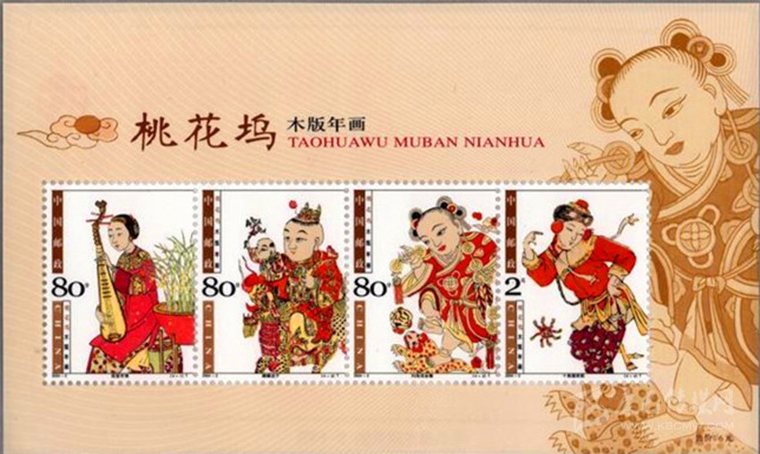 綻放中華民族文化遺產(chǎn)之美的年畫郵票。中國郵政從2003年開始,連續(xù)九年發(fā)行了各地木版年畫系列郵票九套共36枚,每套均為4枚,為新春佳節(jié)帶來吉祥喜慶氣氛。分別是:2003年發(fā)行的《楊柳青木版年畫》、2004年發(fā)行的《桃花塢木版年畫》、2005年發(fā)行的《楊家埠木版年畫》、2006年發(fā)行的《武強木版年畫》2007年發(fā)行的《綿竹木版年畫》、2008年發(fā)行的《朱仙鎮(zhèn)木版年畫》、2009年發(fā)行的《漳州木版年畫》、2010年發(fā)行的《梁平木版年畫》和2011年發(fā)行的《鳳翔木版年畫》。這些不同地域、不同風(fēng)格、不同色彩的年畫,展示了我國非物質(zhì)文化遺產(chǎn)的根深葉茂、博大精深。九套郵票,各有千秋,異彩紛呈,體現(xiàn)了不同地域鮮明的文化特色,方寸之間綻放出中華民族文化遺產(chǎn)的美麗。
