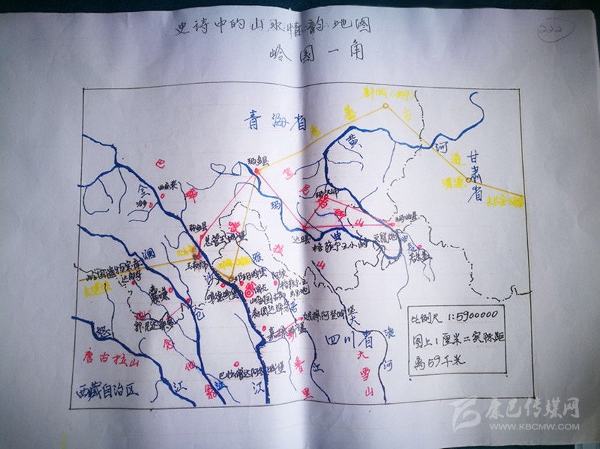 劉安全手繪格薩爾史詩涉及的山水地圖。