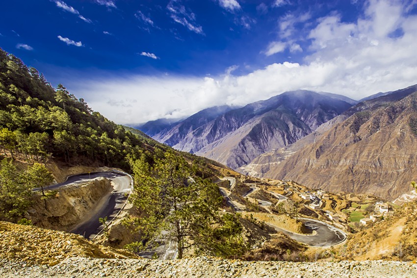 如今,所有鄉(xiāng)村通了硬化路,橫跨在金沙江上的十余座跨江大橋氣貫如虹,天塹變通途。過去我們下鄉(xiāng)時(shí),從日雨到曲雅貢,只有一條從因都壩背后的半山腰路。蒼茫大山,路上幾乎看不見一顆大樹,也找不到一滴水源。從山腰看江畔的因都壩,只有兩戶人家,幾株綠樹總令焦渴難耐的我們望“綠”興嘆!下山走到金沙江邊,熾烈陽光從河灘上反射,火辣辣照在臉龐和皮膚,熱浪令人窒息,感覺目的地遙不可及?,F(xiàn)今,干部下村完全不需要走路,走路下鄉(xiāng)對年輕人來說簡直不可思議。公路像一條飄帶環(huán)繞山間,使散落在峽谷中的村寨愈發(fā)展現(xiàn)出欣欣向榮的新風(fēng)貌。