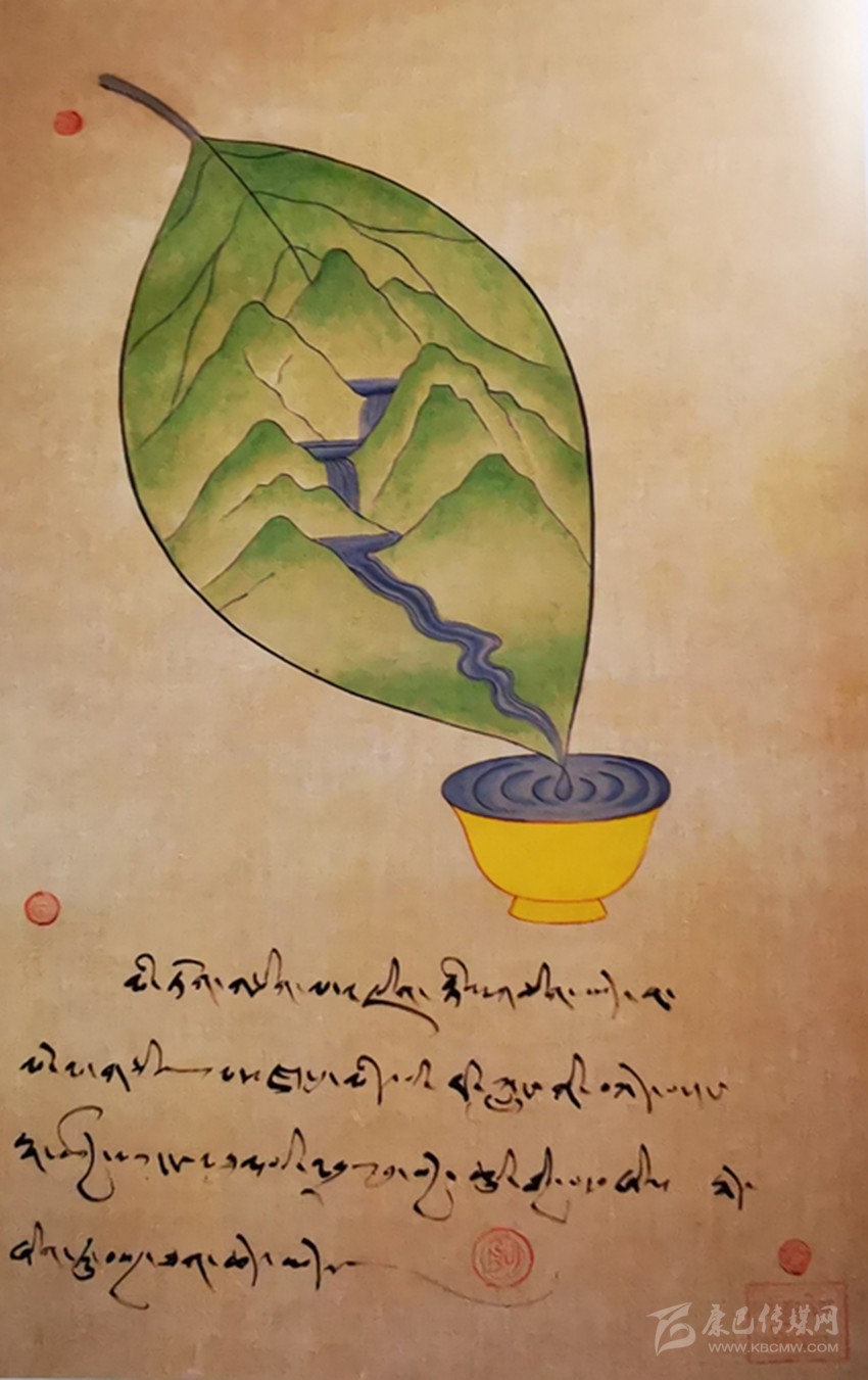 耷·瓊培介紹說:“在新概念唐卡中,慈悲、智慧、勇猛之力是通過一朵花、一片云、一條河、一捧沙來展現,每幅作品都有嶄新的理念、巧妙的構思、簡潔的構圖、抽象的符號、象征性的語言和裝飾化的風格,總體來說頗有清新之意?!?/span>