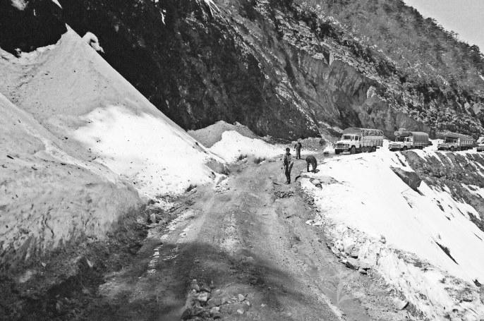 對(duì)二郎山路況,認(rèn)識(shí)最深刻,感受最多的,莫過于長(zhǎng)年生活和工作在山上的道班工人。2016年,筆者走訪了天全縣公路養(yǎng)護(hù)段的老職工,提起二郎山,臨近退休、道班工人出身的老王師傅感慨萬千:我的父親當(dāng)年就在二郎山上,是一名養(yǎng)路工人,打小我就耳濡目染,見識(shí)了山上的艱苦,說實(shí)話,我寧愿當(dāng)農(nóng)民,都不愿頂替父親到山上,家里窮,不得已才上的山。那一年,我才十六歲,一來就分在二郎山海拔最高的木葉棚道班。冬天,大雪封山,濕冷入骨入髓,早上我經(jīng)常被凍醒。起床后,毛巾凍成冰坨沒法洗臉,一夜的狂風(fēng)暴雪,大雪把門堵死不說,門框和門板還粘連在一起了,門都無法出。我費(fèi)盡全力拉開門,雪墻坍塌,“轟”一聲涌進(jìn)屋來,把我深埋雪堆。山上的日子苦得沒法說,長(zhǎng)年就是土豆、地瓜這些擱得的薯類,有葉的蔬菜難得見一回,一遇斷道有時(shí)甚至連吃的都沒有。最受不了的是潮濕,成年累月里,衣服、被褥從來就沒干過。最幸福的是,休息的時(shí)候搭車到陽坡的瀘定山上去曬太陽。