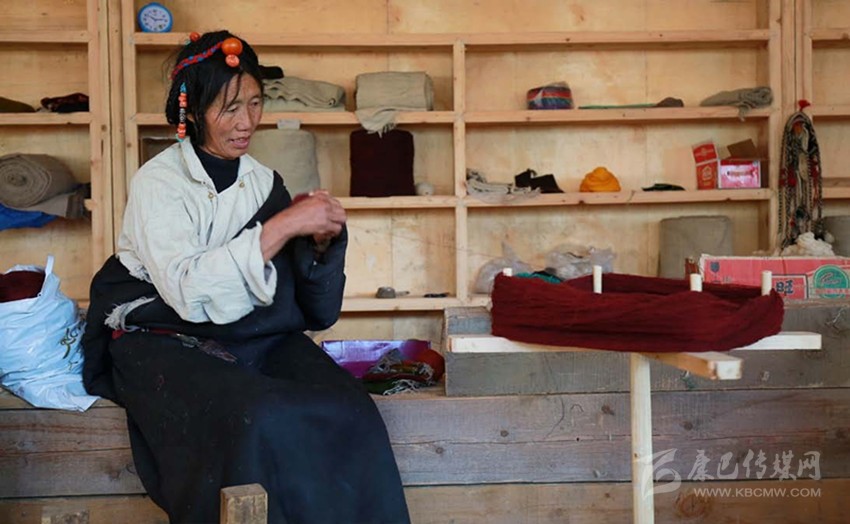 “庫”,這層細軟的底絨被表層粗糙的牦牛毛所覆蓋,且本身細長彎曲,無法用剪刀方便地剪下,故而只能手工采集。從每年春天采集牦牛、羊絨,到捻成線,到染成不同顏色,再到織成一匹布,整個過程全由扎西巴姆和她帶領的幾個藏族婦女手工完成,全部學會這門技術需要3—4年,現(xiàn)在麥宿只有4人全部掌握。但與這費力耗時的工藝形成殘酷對照的是,手工織物在機器快速生產的現(xiàn)代社會,市場經營可謂舉步維艱。雖然工巧明系創(chuàng)立的平臺專門收購編織班做出來的產品,但購買的人并不多,編織班創(chuàng)建至今,所得收益只夠勉強維持平衡。