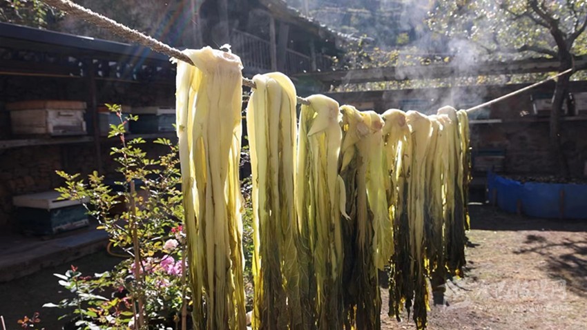 “自給自足”的家庭作坊式生產(chǎn),讓鹽白菜顯得尤為珍貴,這種風味獨特的食品已經(jīng)成為化林坪村的“孤品”,掌握古法腌制晾曬技術的人更是寥寥無幾。