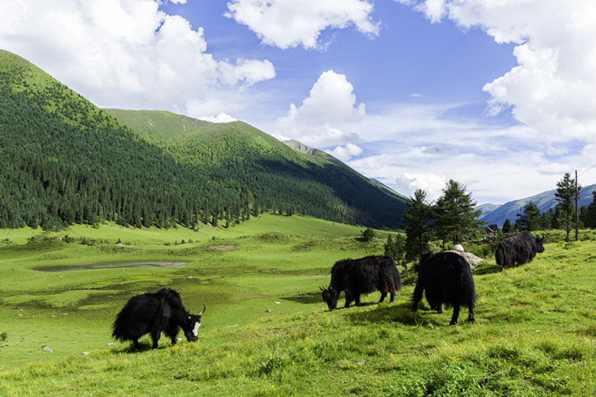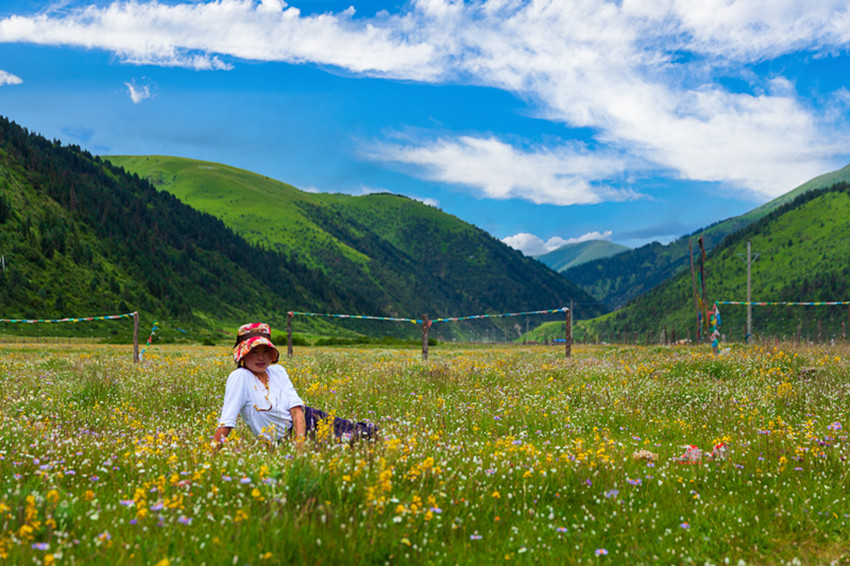 玉科,白猞猁皮鋪展開(kāi)的長(zhǎng)長(zhǎng)山谷,依尼山是其心臟,扎拉山脈是其頭,噶科河、瑪科河是其雙臂,惹智塘和曲赤塘是其胸膛,革科和慶切科是其雙腳,措達(dá)以下則是其尾。這片山川地勢(shì),晶瑩的雪峰、郁郁蔥蔥的林海、翠綠的草甸,清澈的碧湖,湛藍(lán)如洗的天空、潔白的云朵,棲息著豐富的珍稀動(dòng)植物,構(gòu)成了一幅如詩(shī)如畫、動(dòng)人心魄的原生態(tài)畫卷。一年四季景致千姿百態(tài),美不勝收。夏三月,百花盛開(kāi),大地鋪展五彩錦緞。秋三月,一片金黃,映襯得山崗黃燦燦。冬三月,雪花翻飛,大地銀裝素裹。難怪旅游達(dá)人們要驚呼,贊美這里是甘孜的阿勒泰。