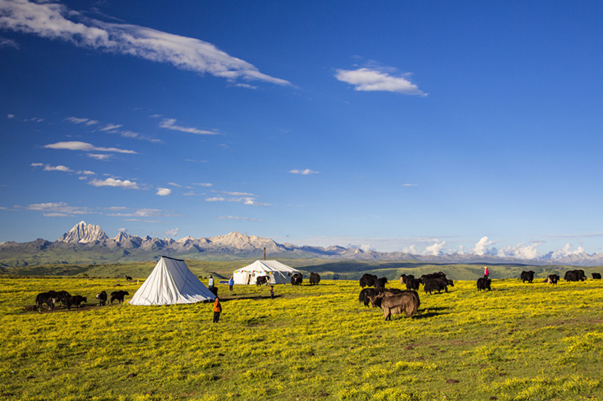 風(fēng)從芒康崗掠過(guò),掠過(guò)東拉山,漫游在瀾滄江和金沙江峽谷岸。源于玉樹(shù)高原的兩條大江游龍般纏繞著康南高高隆起的大地。這里的風(fēng)也這么帥氣,正如這里的人的口頭禪“帥得像達(dá)拉西饒一樣”。不錯(cuò),就是他,那位帥得迷倒康南,帥得四方的人跑來(lái)找他的達(dá)拉西饒。