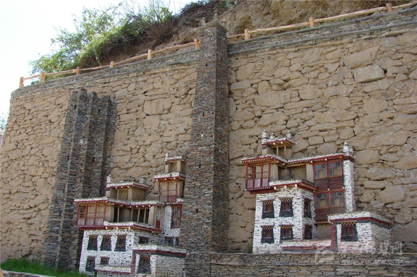 宋達(dá)村活動(dòng)場(chǎng)所是一個(gè)寬約二十米,長(zhǎng)約三十米的大壩,里面是高約十米的石砌圍墻,此時(shí)幾個(gè)工人正在忙碌著,幾座建筑模型已初見(jiàn)成形,最左邊是一座十三角碉的模型,一名工人坐在碉樓的樓頂上拿著手錘正奮力的敲打著眼前的石片,那石雕一半露在墻外,還有一半巧妙的鑲嵌在圍墻里。筆者走上前去,來(lái)到“碉樓”下,整座碉樓都是用灰色的石片砌成,每個(gè)石片間距一致,幾乎不見(jiàn)一點(diǎn)縫隙,充分展示了嘉絨人民高超的石砌技藝。十三角碉,顧名思義,就是整座碉樓由十三個(gè)角組成,在古時(shí)候是展示財(cái)富和地位的一種表現(xiàn)形式,砌墻的師傅非常健談,他告訴我,在嘉絨地區(qū),碉樓又以十三角碉最為罕見(jiàn),據(jù)說(shuō),如今殘存的十三角碉全世界都只有三座,而其中保護(hù)得最為完整的尤數(shù)梭坡鄉(xiāng)普格頂村了,他頓了頓,伸出布滿(mǎn)青筋沾滿(mǎn)灰塵的手,往上指了指,自豪的說(shuō),它就在我們宋達(dá)村的山巔上,我不禁肅然起敬,為家鄉(xiāng)擁有這樣一座凝聚著嘉絨人民智慧結(jié)晶的古碉而激動(dòng)不已。在十三角碉旁,是一座典型的嘉絨藏房模型,共有五層,第一層為關(guān)牛羊的畜圈,石砌匠人巧妙的將一樓門(mén)洞和排水口合二為一,即增加了美感,也增加了科學(xué)性。第二層樓房有兩扇窗戶(hù),是人們飲食起居的重要場(chǎng)所。第三層樓房上有三扇窗戶(hù),是儲(chǔ)藏糧食、臘肉的地方。每一扇窗按照比例縮小制成,當(dāng)筆者問(wèn)匠人為什么嘉絨藏房的門(mén)窗都如此矮小時(shí),他對(duì)此也娓娓道來(lái)。他告訴我,古時(shí)候嘉絨大地上混沌莫開(kāi)、妖魔橫行,人們每天都在膽戰(zhàn)心驚中度過(guò),那時(shí)候的房屋窗戶(hù)、門(mén)都修得異常的高大,夜幕降臨時(shí),這些妖魔就從窗戶(hù)、門(mén)洞里爬進(jìn)來(lái),將熟睡的人擄走,后來(lái)嘉絨女王要求屬民們將窗戶(hù)和門(mén)洞改小,后來(lái)人們一直將此修建之法一直延續(xù)至今。第四層上是用木板、木頭作成的回廊,紅白相間,煞是美觀。第五層是堆放雜物的場(chǎng)所,石墻的每個(gè)角上都有石砌的尖角,如牛角一樣直指蒼穹,在尖角之間,有煨桑祈福的佛塔。再往右邊是一座四角碉的模型,由于只有四角,因此在修建中速度比十三角碉快了許多,那棱角愈發(fā)的鋒利。在嘉絨藏區(qū),這種碉樓是最常見(jiàn)的碉樓之一,碉樓藏語(yǔ)中稱(chēng)為“邛籠”。早在2000年前《后漢書(shū)'西南夷傳》就有羌族人“依山居止,壘石為屋,高者至十余丈”的記載。碉樓多建于村寨住房旁,高度在10至30米之間,用以御敵和貯存糧食柴草。碉樓有四角、六角、八角幾形式。碉樓一般建于沿河谷高山或半坡有耕地和水源的地方,結(jié)合地形,利用有限的平臺(tái),利用石頭筑成平頂。一般分成二層或三層,上層堆放糧食,中層住人,下層圈養(yǎng)牲畜,高二三丈,稱(chēng)為邛籠;高的可有十三層,達(dá)十余丈,稱(chēng)為碉。碉樓由專(zhuān)門(mén)的砌石匠修建,原料為亂石,用泥土粘合,不吊線(xiàn),不繪圖,全憑經(jīng)驗(yàn),信手砌成。其壁面能達(dá)到光滑平整,不留縫隙,其堅(jiān)固程度則可在川西這個(gè)地震多發(fā)區(qū)聳立數(shù)十年甚至數(shù)百年,經(jīng)歷數(shù)次地震仍然巍然屹立,有的已偏倚卻不倒,有的彎曲為弓,自成風(fēng)景。它按照功能分為戰(zhàn)碉、家碉、寨碉等。再往右邊走,是一座低矮的樓房,它也是嘉絨藏區(qū)最為常見(jiàn)的藏房之一,雖然低矮,然而其中的雕樓畫(huà)棟美不勝收。據(jù)縣農(nóng)辦負(fù)責(zé)人介紹,宋達(dá)村地處普格頂山腳下,省道線(xiàn)從門(mén)前經(jīng)過(guò),山頂山有著為名遐邇的十三角碉,民風(fēng)純樸,因此該村要突出物質(zhì)文化引領(lǐng)經(jīng)濟(jì)建設(shè)的發(fā)展,為此打造碉樓文化及藏族民居文化,吸引大批游客走進(jìn)村莊里,鼓勵(lì)村民自己建造有著嘉絨風(fēng)味的藏族民居,實(shí)現(xiàn)生產(chǎn)發(fā)展,這是新農(nóng)村建設(shè)的中心環(huán)節(jié),是實(shí)現(xiàn)其他目標(biāo)的物質(zhì)基礎(chǔ),也是我們打造宋達(dá)村新農(nóng)村建設(shè)所思考的問(wèn)題,我們也逐步在實(shí)現(xiàn)這目標(biāo)。