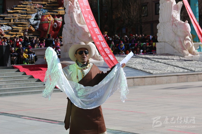 吉祥頌,藏語(yǔ)稱(chēng)為“協(xié)巴”,是州級(jí)非物質(zhì)文化遺產(chǎn)之一。“協(xié)巴”在藏族民間生活中占有重要的地位,尤其在喜慶活動(dòng)上,是一項(xiàng)不可或缺的重要儀式。州級(jí)非物質(zhì)文化遺產(chǎn)傳承人——高城鎮(zhèn)車(chē)馬村的翁堆老人手捧潔白的哈達(dá),為觀眾表演了《協(xié)巴——中國(guó)夢(mèng)、理塘夢(mèng)》,展現(xiàn)了時(shí)代變遷中,“吉祥頌”這一民間藝術(shù)在思想內(nèi)容和藝術(shù)手法的創(chuàng)新之美。