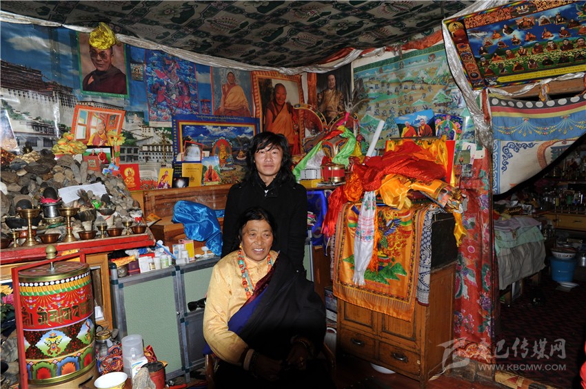 作者與格薩爾說唱藝人俄珍卓瑪。