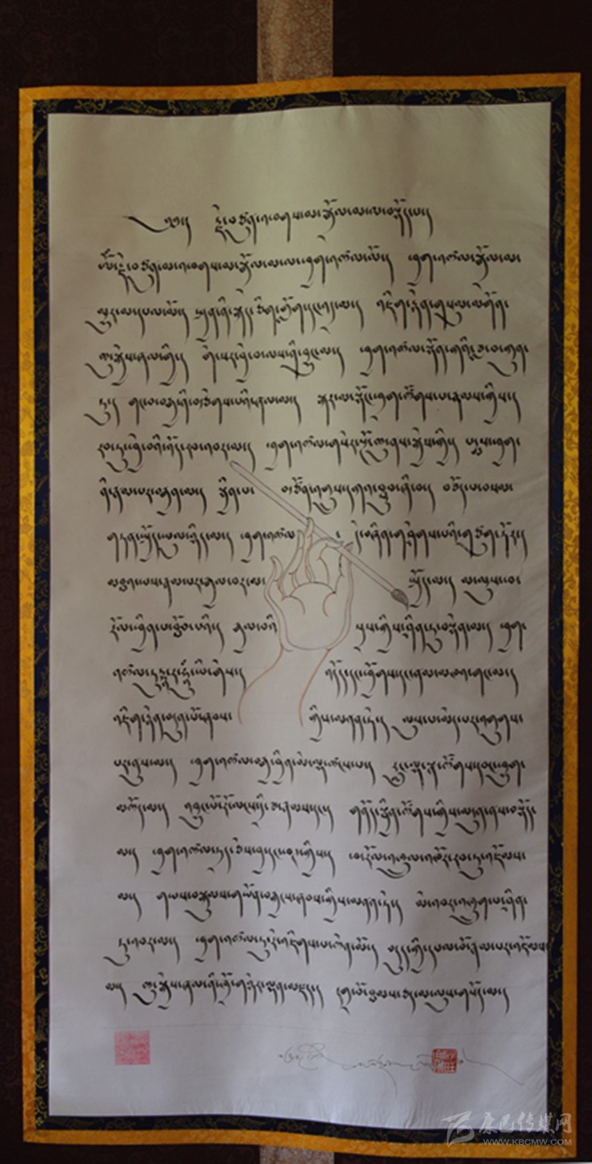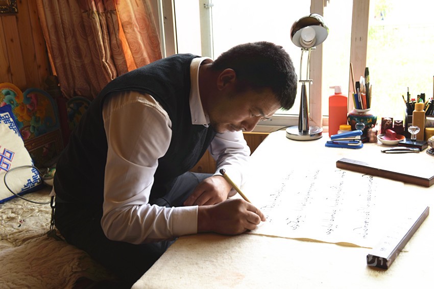 “德珍書(shū)法原本就是集歷史上藏文書(shū)法大師作品精華而成。”這些年,昂旺曲批呆在理塘,潛心研究當(dāng)代各個(gè)藏文流派名家的書(shū)法作品,同時(shí)和內(nèi)地的漢字書(shū)法名家保持著聯(lián)系。他希望自己沿著“集眾家所長(zhǎng),兼收并蓄”的精神傳統(tǒng),把“德珍派”藏文書(shū)法的傳統(tǒng)發(fā)揚(yáng)廣大,同時(shí)能有所創(chuàng)新。