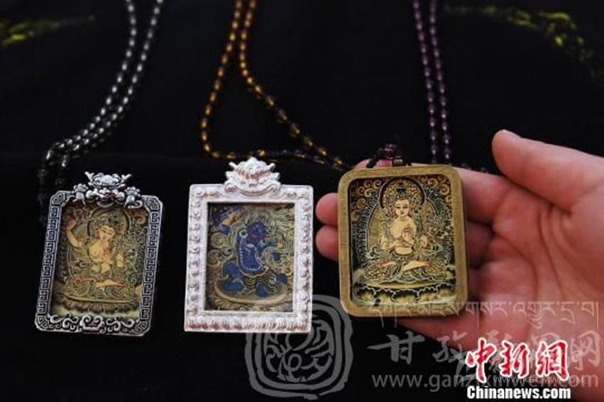 張馨藝說(shuō),微型唐卡完成后,經(jīng)精美銀盒裝飾后,不僅可以佩戴于身上,還可以?huà)煸诩抑小⑵?chē)?yán)?,有保平安的意思。相?duì)于巨幅唐卡,價(jià)格更容易被民眾接受,也有收藏的價(jià)值。