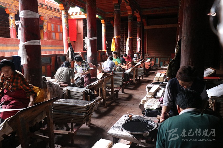 雕刻完《甘珠爾》印版后,繼續(xù)雕刻了《薩迦五祖文集》、《佛教源流》和修法儀軌等各種單行本文獻(xiàn)60多函,并開(kāi)始刻制了《丹珠爾》。據(jù)有關(guān)資料記載 《薩迦五祖文集》是在俄爾堪布扎西倫珠的大力支持下,搜集了噶阿尼當(dāng)巴所編的《薩迦五祖文集》以及龔埡和更慶等寺廟保存的六種不同版本對(duì)照??保詴赃_(dá)桑林寺保存的《薩迦五祖文集》為底本,由木桑銀巴嘉措為編審師,于公元1734年4月25日始刻,公元1736年完成。各工種所用經(jīng)費(fèi)折成茶塊共計(jì)1013小包(每包約10公斤)。摘自《藏文雕刻版印刷傳承與保護(hù)》