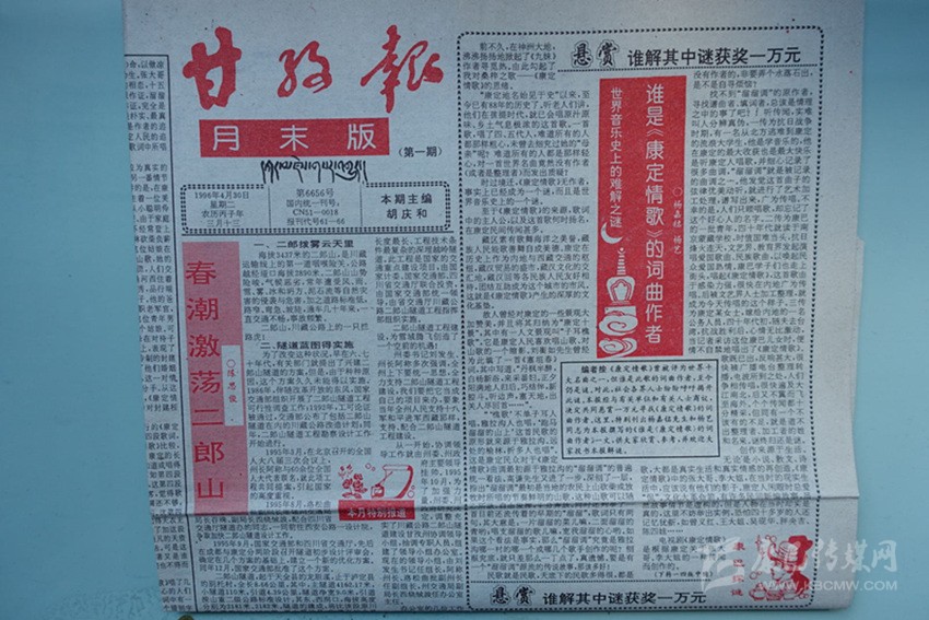 《甘孜報(bào)》當(dāng)年刊載尋找《康定情歌》作者一文的第一期(月末版)報(bào)紙。