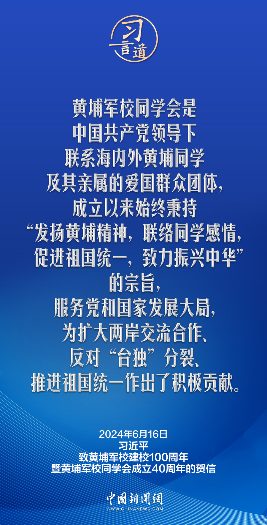 在黃埔軍校建校100周年暨黃埔軍校同學(xué)會(huì)成立40周年之際,中共中央總書(shū)記、國(guó)家主席、中央軍委主席習(xí)近平發(fā)來(lái)賀信,代表中共中央向黃埔軍校同學(xué)會(huì)表示熱烈祝賀,向廣大海內(nèi)外黃埔同學(xué)及其親屬致以誠(chéng)摯問(wèn)候。習(xí)近平指出——