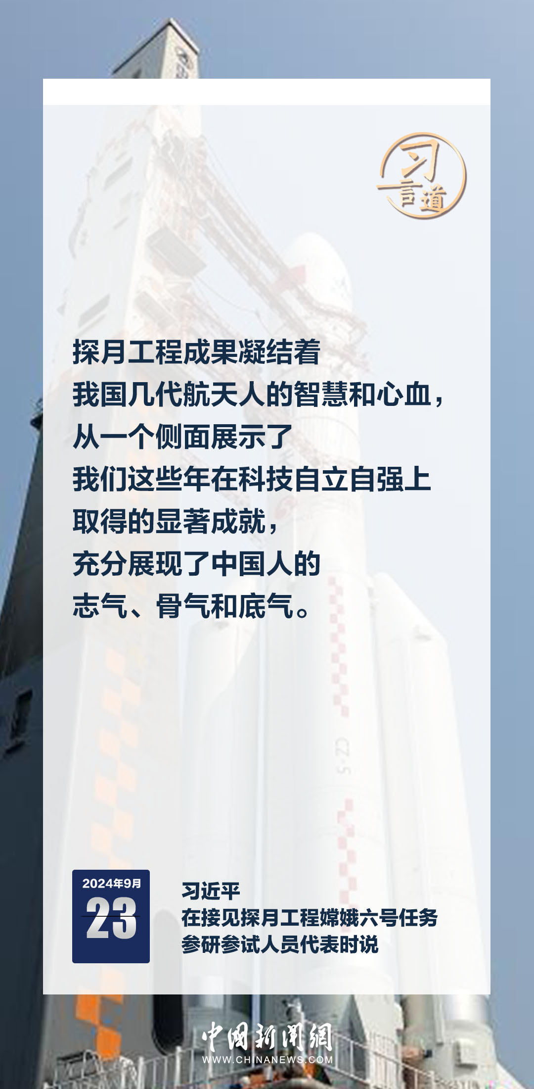 中共中央總書記、國(guó)家主席、中央軍委主席習(xí)近平23日在人民大會(huì)堂接見探月工程嫦娥六號(hào)任務(wù)參研參試人員代表時(shí)發(fā)表重要講話。習(xí)近平指出——