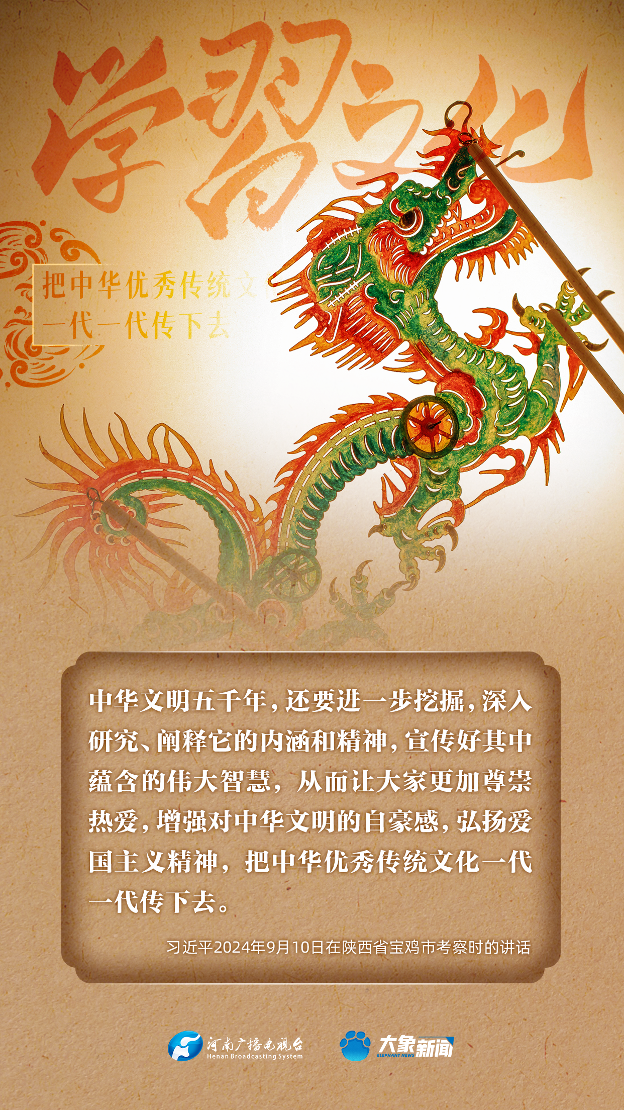 習(xí)近平總書記高度重視中華優(yōu)秀傳統(tǒng)文化的傳承發(fā)展,發(fā)表了一系列重要講話,大象新聞邀您一起學(xué)思踐悟,身體力行。