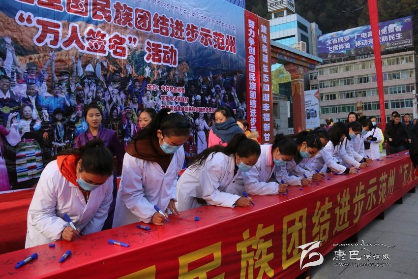 我們的家鄉(xiāng)更好更快地發(fā)展。”11月20日,在我州康定情歌廣場舉行創(chuàng)建全國民族團結(jié)進步示范州“萬人簽名”活動現(xiàn)場,來自省藏校的學(xué)生代表李康珠這樣說道。
