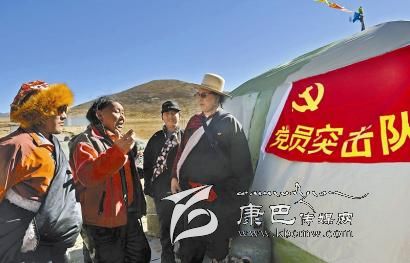 26日上午,一面五星紅旗飄揚(yáng)在康定縣塔公鄉(xiāng)江巴村“黨員突擊隊”搭建的帳篷上空,胸前佩戴著黨徽的江巴村黨支部書記呷讓甲帶領(lǐng)兩名牧民黨員,為村民解決救災(zāi)物資供應(yīng)等問題。