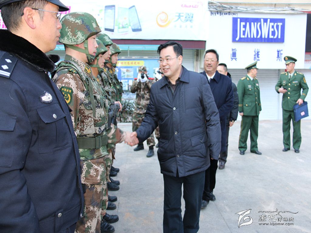 隨后,胡昌升一行先后來(lái)到州武警支隊(duì)二支隊(duì)、康定情歌廣場(chǎng)治安執(zhí)勤點(diǎn)和州維穩(wěn)指揮中心,看望慰問了堅(jiān)守在崗位上的公安民警、武警戰(zhàn)士和一線值班人員。每到一處,胡昌升都與他們一一握手,親切交談,表示誠(chéng)摯的問候和衷心的感謝。胡昌升說(shuō),在這個(gè)舉國(guó)歡慶、合家團(tuán)圓的美好日子里,堅(jiān)守在一線的公安民警、武警戰(zhàn)士和廣大干部職工,舍小家為大家,辛勤地工作在各自崗位上,為廣大人民群眾創(chuàng)造了一個(gè)歡樂祥和的春節(jié)。他要求廣大公安干警和武警官兵要充分發(fā)揮不怕疲勞、連續(xù)作戰(zhàn)的精神,強(qiáng)化工作措施,全力維護(hù)國(guó)家安全和社會(huì)穩(wěn)定;要增強(qiáng)責(zé)任意識(shí),時(shí)刻保持清醒頭腦,做到警鐘長(zhǎng)鳴,深入落實(shí)各項(xiàng)維穩(wěn)措施,隨時(shí)做好戰(zhàn)斗準(zhǔn)備,嚴(yán)厲打擊分裂祖國(guó)的破壞活動(dòng)和各類違法犯罪活動(dòng),全力維護(hù)社會(huì)和諧穩(wěn)定,切實(shí)保障人民群眾生命財(cái)產(chǎn)安全。在新的一年里,希望大家在各自的崗位上繼續(xù)扎實(shí)工作、銳意創(chuàng)新,不斷取得新成績(jī)、作出新貢獻(xiàn)。并祝大家新年快樂,身體健康,工作順利,闔家幸福,扎西德勒!