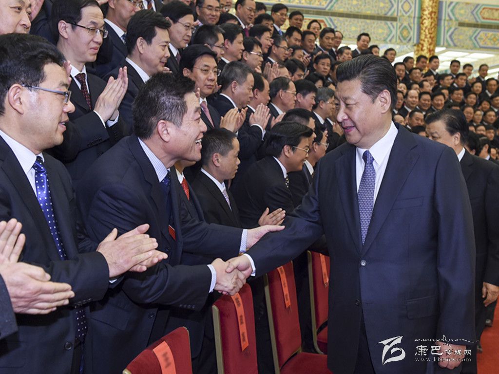 下午3時(shí),習(xí)近平等來到人民大會堂金色大廳,同代表們親切握手,并合影留念。