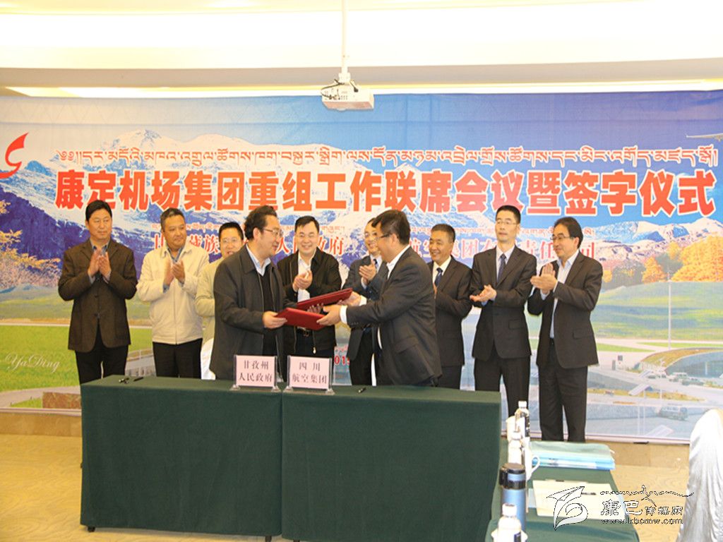 會上,胡昌升和李海鷹分別作了講話,益西達瓦和李海鷹分別代表州人民政府和川航集團簽署了四川康定機場集團公司重組事宜備忘錄。李海鷹在講話中表示,川航集團和甘孜州的發(fā)展方向一致,價值取向一致,雙方一定會在加強合作的基礎上實現(xiàn)共同發(fā)展;川航將盡快開通西安、重慶、昆明、杭州至甘孜州的航線,開通康定至稻城的“高高原”互飛航班;充分利用川航集團的宣傳平臺,推廣甘孜州旅游、文化等優(yōu)勢資源和產(chǎn)業(yè),積極參與甘孜州全域旅游發(fā)展,將甘孜州“飛機+X”相關產(chǎn)業(yè)納入川航集團“十三五”規(guī)劃。