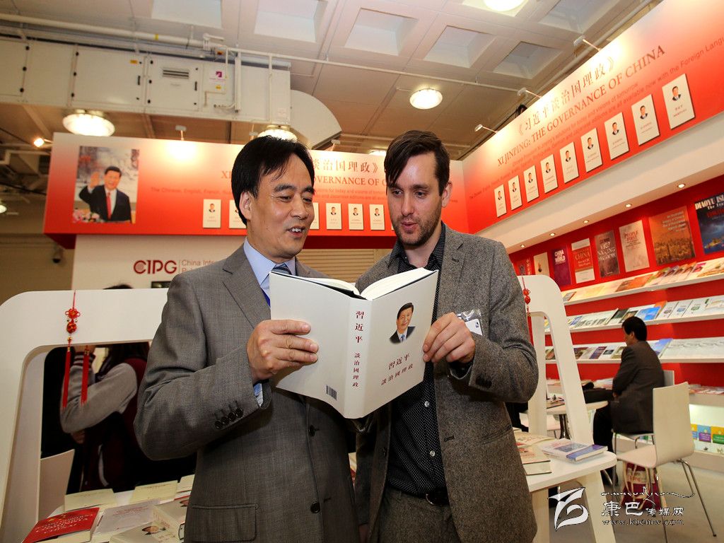 4月14日,中國(guó)國(guó)際出版集團(tuán)副總裁陸彩榮(左)在倫敦書(shū)展上向一名英國(guó)讀者介紹《習(xí)近平談治國(guó)理政》(繁體中文版)一書(shū)。第44屆倫敦書(shū)展當(dāng)天正式開(kāi)幕。首次亮相倫敦書(shū)展的《習(xí)近平談治國(guó)理政》多文種版圖書(shū)受到各界的極大關(guān)注,成為本屆書(shū)展中國(guó)展團(tuán)的一大亮點(diǎn)。陸彩榮在倫敦書(shū)展上宣布,《習(xí)近平談治國(guó)理政》一書(shū)全球發(fā)行量突破400萬(wàn)冊(cè),其中海外發(fā)行40萬(wàn)冊(cè),這是改革開(kāi)放以來(lái),中國(guó)國(guó)家領(lǐng)導(dǎo)人著作海外發(fā)行的最高紀(jì)錄。新華社記者 韓巖 攝