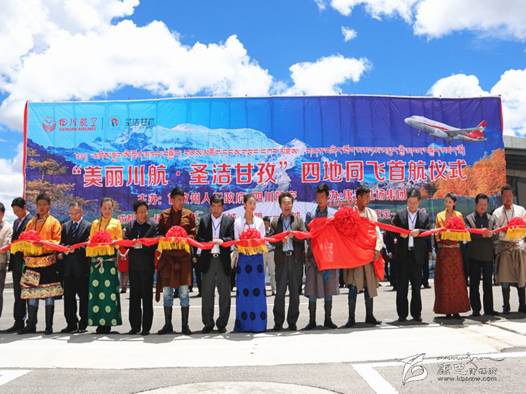 在康定機(jī)場(chǎng)首航儀式上,受州委書(shū)記劉成鳴的委托,益西達(dá)瓦代表州委、州人大、州政府、州政協(xié)和全州各族干部群眾向出席首航儀式的各位嘉賓、各位朋友表示熱烈歡迎,向四地同飛成功首航表示熱烈祝賀。他指出,長(zhǎng)期起來(lái),甘孜州貧困在交通,落后在交通,突破天塹、打通天路、向往神鷹,是全州人民多年來(lái)的夙愿。在黨中央、國(guó)務(wù)院和省委、省政府的親切關(guān)懷下,在社會(huì)各界的大力支持下,在歷屆州委、州政府的努力下,我州投資334億元實(shí)施兩輪交通大攻堅(jiān),全面提升改造國(guó)省干道,康定機(jī)場(chǎng)、稻城亞丁機(jī)場(chǎng)先后建成通航,甘孜格薩爾機(jī)場(chǎng)、雅康高速公路正加快前期,甘孜立體交通網(wǎng)路正在形成,長(zhǎng)期困擾發(fā)展的交通瓶頸即將突破。站在新的歷史起點(diǎn)上,我州不斷適應(yīng)新常態(tài),主動(dòng)把握新機(jī)遇,全面加強(qiáng)與川航集團(tuán)的戰(zhàn)略合作,提出了“飛機(jī)+X”產(chǎn)業(yè)發(fā)展的新模式。今天四地同飛就是雙方合作的良好開(kāi)端,隨著合作的不斷深化,一個(gè)以飛航服務(wù)為主線(xiàn),融合文化旅游、電商物流、特色產(chǎn)品、臨空服務(wù)的產(chǎn)業(yè)鏈將加快形成,“美麗川航·圣潔甘孜”的合作必將無(wú)限美好。