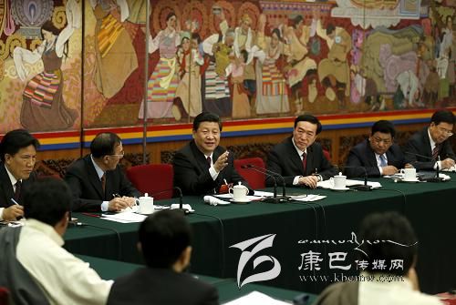 圖為:2013年3月9日,習近平參加十二屆全國人大一次會議西藏代表團的審議。
