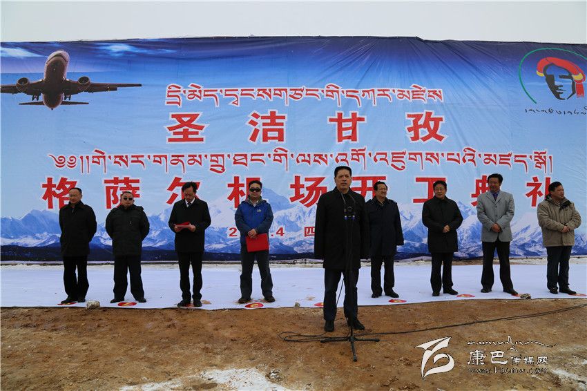 益西達(dá)瓦在致辭中指出,甘孜格薩爾機(jī)場(chǎng)是繼康定機(jī)場(chǎng)、稻城亞丁機(jī)場(chǎng)之后,我州建設(shè)的第三個(gè)機(jī)場(chǎng),項(xiàng)目投資22.88億元,力爭(zhēng)2017年10月建成試飛。甘孜格薩爾機(jī)場(chǎng)的開(kāi)工建設(shè),是我州實(shí)施“交通先行”戰(zhàn)略的重大舉措,對(duì)進(jìn)一步加快我州經(jīng)濟(jì)社會(huì)全面協(xié)調(diào)可持續(xù)發(fā)展具有十分重要的意義。該機(jī)場(chǎng)的建成,必將開(kāi)啟我州“十三五”發(fā)展的新征程,必將推動(dòng)我州經(jīng)濟(jì)社會(huì)實(shí)現(xiàn)新跨越,必將促進(jìn)我州旅游等產(chǎn)業(yè)實(shí)現(xiàn)新發(fā)展,必將加快我州農(nóng)牧民群眾脫貧奔康的新步伐。他說(shuō),建設(shè)甘孜格薩爾機(jī)場(chǎng)是全州人民特別是北路群眾多年的期盼,機(jī)場(chǎng)規(guī)劃在“十一五”、爭(zhēng)取在“十二五”、建設(shè)在“十三五”,飽含著中央領(lǐng)導(dǎo)和國(guó)家部委的厚愛(ài),體現(xiàn)著省委、省政府的重視,凝聚著歷屆州委、州政府的心血,我們一定要倍加珍惜,一定要把甘孜格薩爾機(jī)場(chǎng)建設(shè)成一流的高原機(jī)場(chǎng)。希望甘孜、德格兩縣通力合作、協(xié)調(diào)配合,切實(shí)為機(jī)場(chǎng)建設(shè)營(yíng)造良好的外部環(huán)境;希望州級(jí)相關(guān)部門(mén)簡(jiǎn)化程序、搞好服務(wù),切實(shí)為該機(jī)場(chǎng)建設(shè)開(kāi)辟“綠色”通道;希望廣大人民群眾多理解、多支持,切實(shí)擁護(hù)機(jī)場(chǎng)的各項(xiàng)建設(shè);希望各參建單位和廣大建設(shè)者發(fā)揚(yáng)“亞丁機(jī)場(chǎng)精神”,努力把甘孜格薩爾機(jī)場(chǎng)建設(shè)成為一流的標(biāo)桿工程。