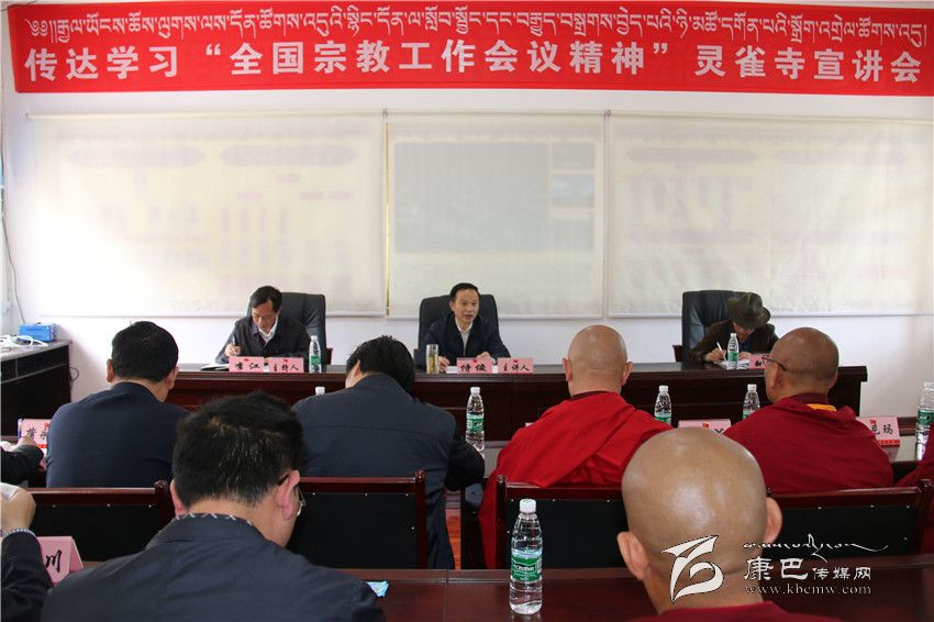 本網(wǎng)訊(記者 陳斌 文/圖)按照省委統(tǒng)一部署,5月30日,省委常委、政法委書記侍俊深入我州道孚縣,分別向全縣副科級以上干部和靈雀寺宗教界人士宣講全國宗教工作會議精神。