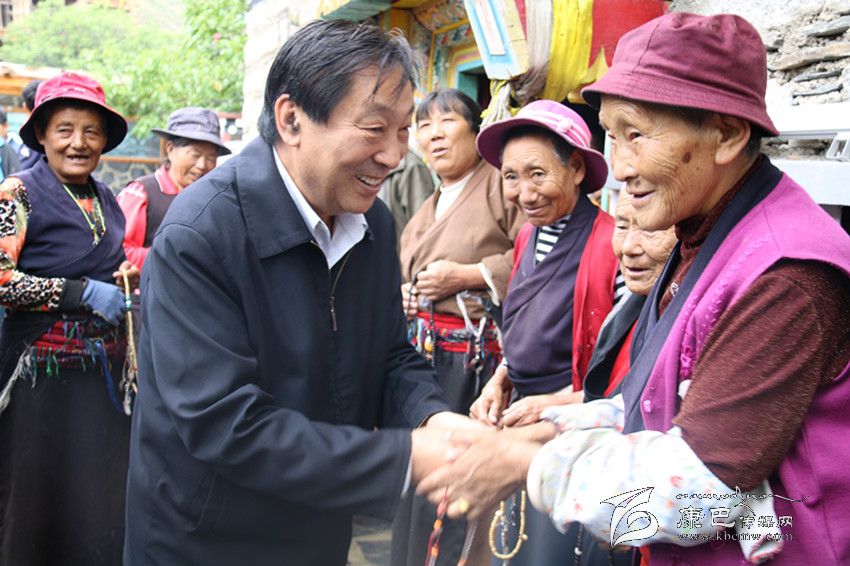 齊續(xù)春一行在香格里拉鎮(zhèn)呷擁村看望參加活動(dòng)的老人。
