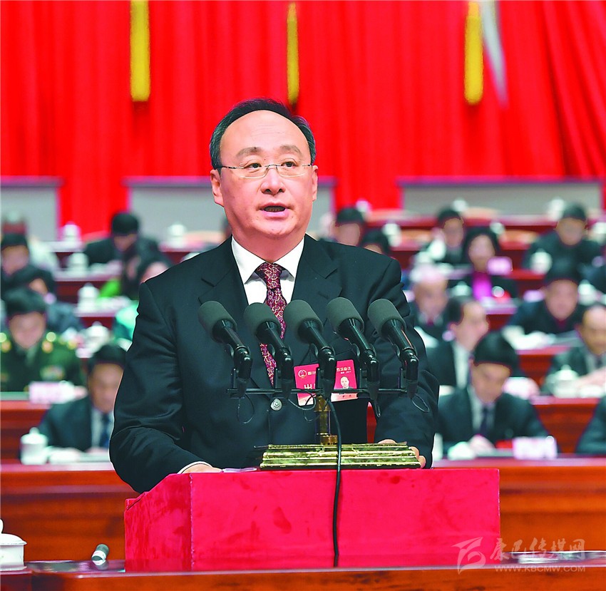 省長尹力代表省人民政府作工作報(bào)告。省政協(xié)主席柯尊平、西部戰(zhàn)區(qū)空軍司令員戰(zhàn)厚順出席大會并在主席臺就座。