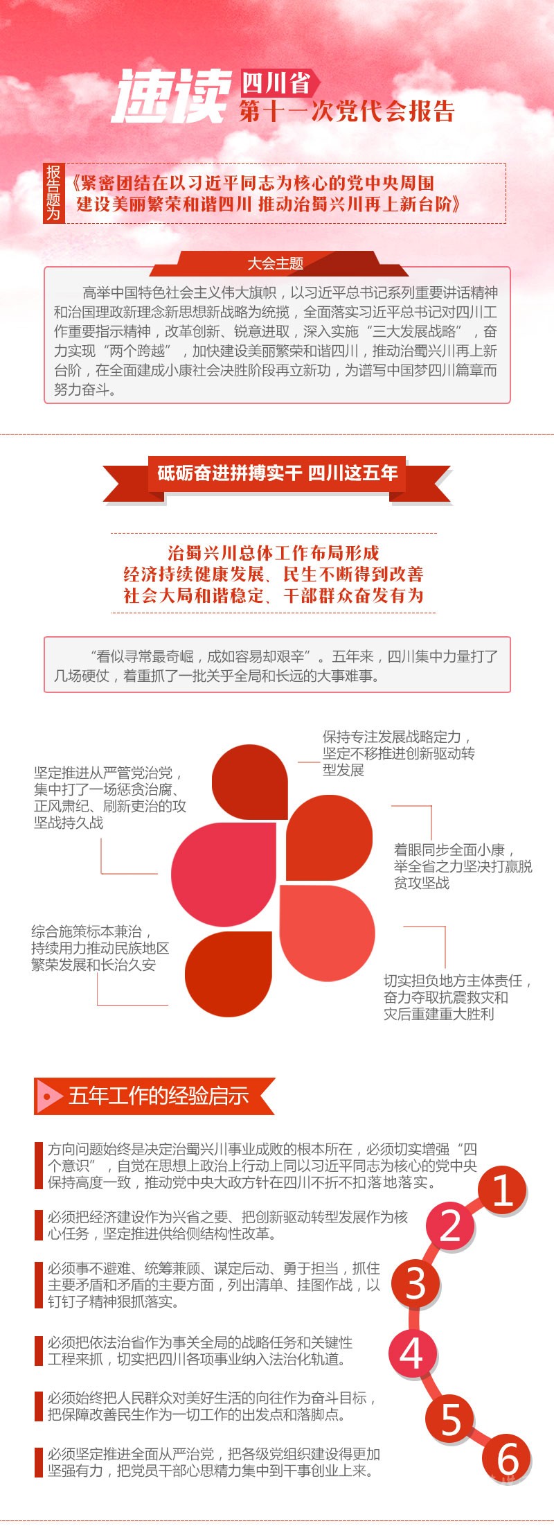 省第十一次黨代會5月24日上午開幕,王東明代表十屆四川省委向大會作報告。四川這五年砥礪奮進(jìn)拼搏實干取得了怎樣的成績?收獲哪些經(jīng)驗啟示?未來如何開創(chuàng)發(fā)展新局面?