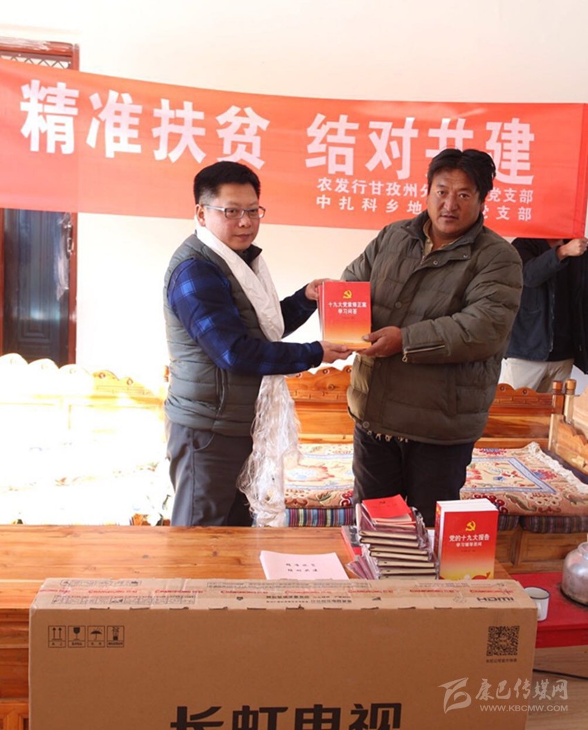農發(fā)行甘孜州分行向共建支部贈送十九大知識輔導讀本。