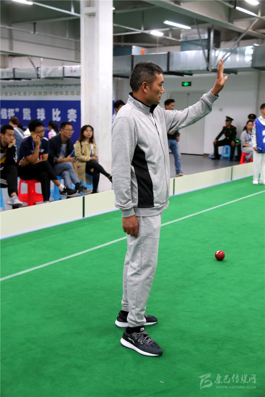 “紅球出界,藍(lán)球一方得4分?!薄凹t球一方準(zhǔn)備發(fā)球。”這時(shí)在北門(mén)體育場(chǎng)蹴球比賽四個(gè)比賽場(chǎng)地中央,裁判打出了得分指令和開(kāi)球命令。得4分是該項(xiàng)賽事的最高分,也有同時(shí)得分的規(guī)則,如當(dāng)紅球擊打藍(lán)球時(shí),同時(shí)出場(chǎng),紅球一方得4分,而藍(lán)球一方也能得2分。這時(shí),裁判會(huì)打出4和2的手勢(shì),引導(dǎo)記分人員作好記分。“這與乒乓球規(guī)則有些相似,但不同的是乒乓球裁判是坐著的,而蹴球裁判是站起的?!庇^眾看后都這樣認(rèn)為,這就是蹴球的魅力。