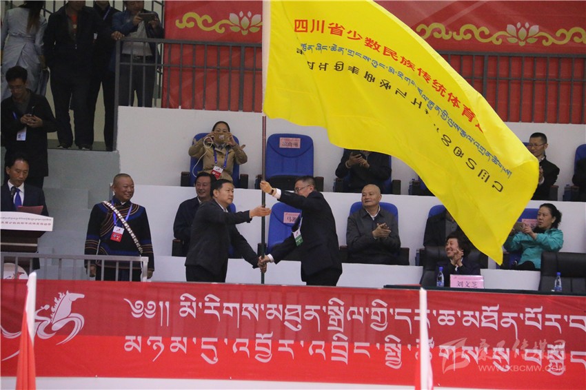 閉幕式上舉行了會旗交接儀式,由甘孜州委常委、州人民政府副州長李一昕將運(yùn)動會會旗交還組委會副主任、省民族宗教委主任張富國,由張富國將會旗轉(zhuǎn)交給下屆民族運(yùn)動會承辦單位代表涼山州委常委、州人民政府副州長裴啟斌。四川省第十六屆少數(shù)民族傳統(tǒng)體育運(yùn)動會將于2022年在涼山州舉行。