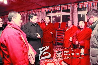 在結(jié)束對爐霍縣的調(diào)研后,胡昌升來到色達縣五明佛學(xué)院時已是晚上9點過了,他顧不上吃飯和休息立即看望和慰問受災(zāi)僧尼,與大家一一握手致意,詳細詢問受災(zāi)情況,并向受災(zāi)僧尼發(fā)放了棉衣、棉手套等過冬物資和慰問金。他指出,色達縣五明佛學(xué)院火災(zāi)發(fā)生后,省委、省政府,州委、州政府十分關(guān)心,省委書記王東明,省委副書記、省長魏宏,省委副書記柯尊平,省委常委、政法委書記劉玉順,副省長侍俊,省政協(xié)副主席、統(tǒng)戰(zhàn)部長崔保華等領(lǐng)導(dǎo)多次詢問受災(zāi)情況,并對下一步工作作出要求。