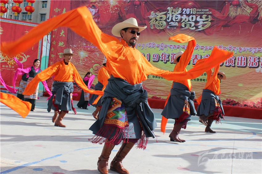 本網訊 2月8日(大年初四),甘孜縣綜合體育廣場襟飄帶舞,熱鬧非凡,該縣2019年迎新春民間文藝演出在這里舉行,來自甘孜鎮(zhèn)的羊卓拉演出隊和瓦巴村演出隊,跳起歡快的鍋莊弦子,共慶新年,共同為祖國和家鄉(xiāng)的明天祝福,祈福豐收、團聚和幸福。