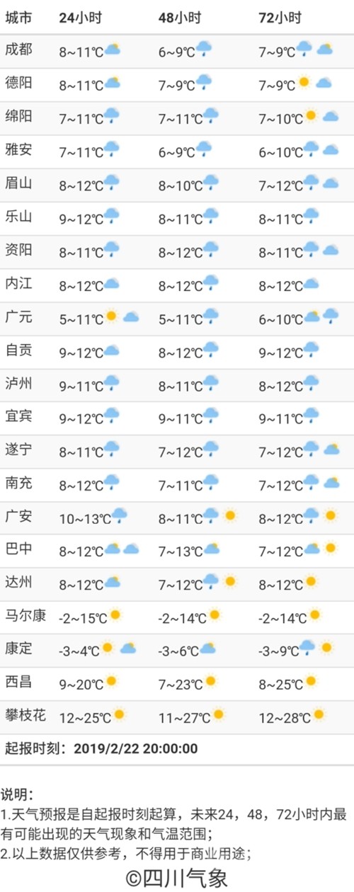 嗯,下面就是四川各主要城市的天氣最近三天的天氣,看好了: