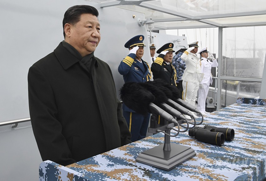 圖為習(xí)近平檢閱艦艇編隊(duì)。