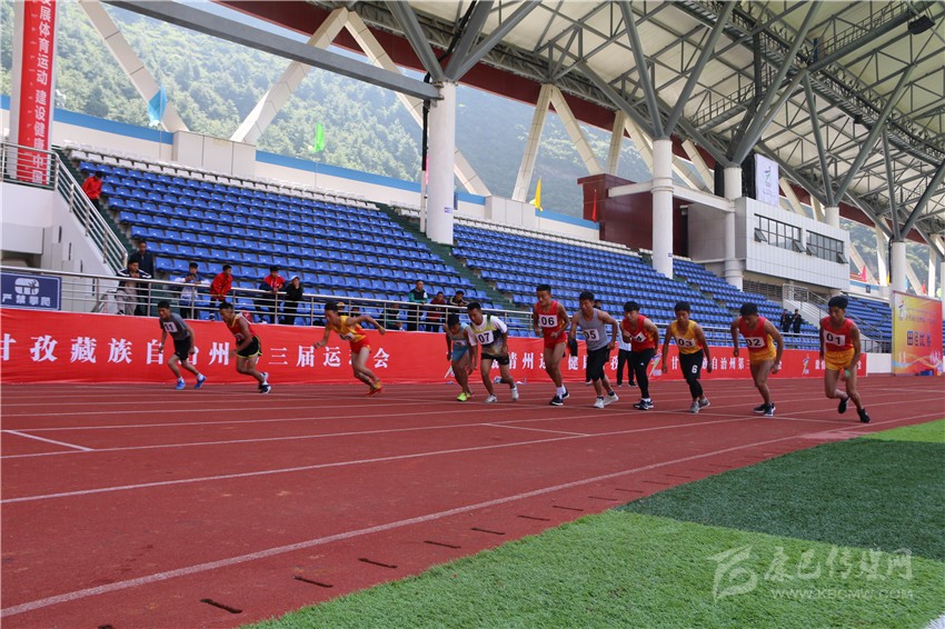 本網訊 8月23日,康定北門體育場內歡聲雷動、彩旗飄揚,州第三屆運動會田徑類比賽中的成年男子100米賽跑、成年女子100米賽跑、青年男子100米賽跑、青年女子100米賽跑、成年女子800米賽跑(直接進行決賽)和青年女子鉛球6個比賽項目,按原計劃在這里進行。